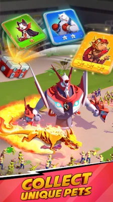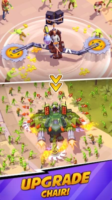 Transform your basic stool into a fully armed combat throne with flamethrowers, laser cannons, and machine guns to obliterate the undead. Customize your chair’s defenses with auto-turrets, electrified barriers, and motion-detection weapons for an unstoppable idle defense fortress. Level up and unlock unique chair skins to stand out in the heat of tower war battles.