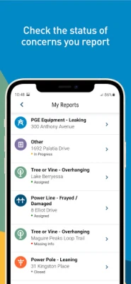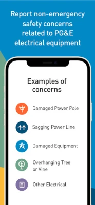With the app, you can: • Review examples of safety issues • Submit a photo or video of a non-emergency safety concern • See submissions made by others • Get notified when your safety concern is under review or closed • See PG&E’s findings about your concern and others